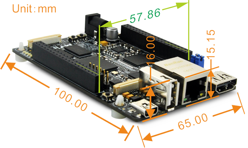| 扩展接口 | 2路SPI,2路I2C,2路CAN,4路串口,1路MMC信号,8路ADC |