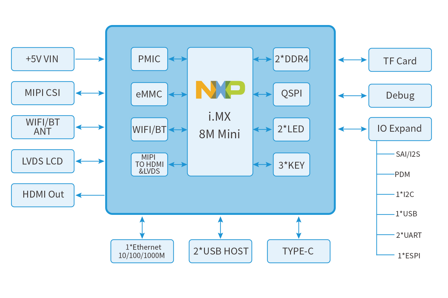 MYS-8MMX-V2单板,基于i.MX8MMini处理器,将良好的处理能力与先进的音频、视频和图形功能集于一身,提供低功耗、高性能的解决方案,适用于嵌入式消费和工业应用。