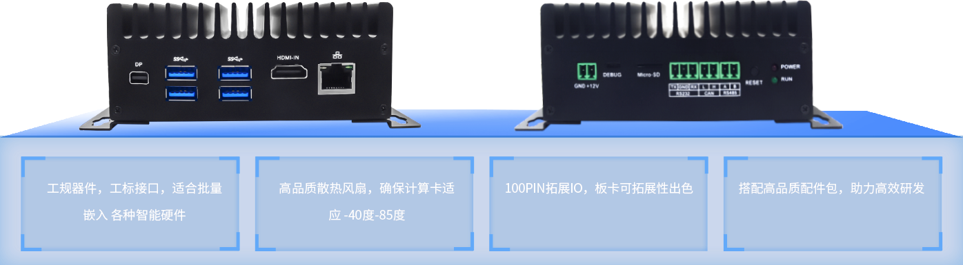 基于XCZU5EV (4核Cortex-A53融合FPGA)自适应可伸缩计算架构,支持二次开发,支持快速模型迭代 4GB/8GB DDR4 SDRAM(64bit,2400MHz)搭配32GB eMMC 的存储组合,支撑多模型/高精度模型部署 支持DP、USB、HDMI、GigeNet等丰富接口 支持8-16路视频解码,4-8路智能分析。
