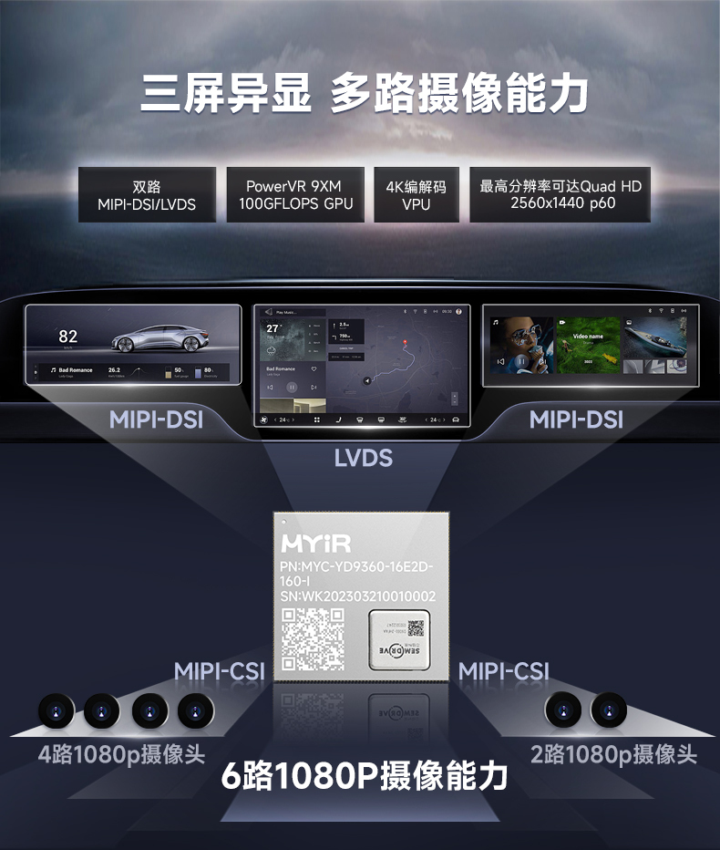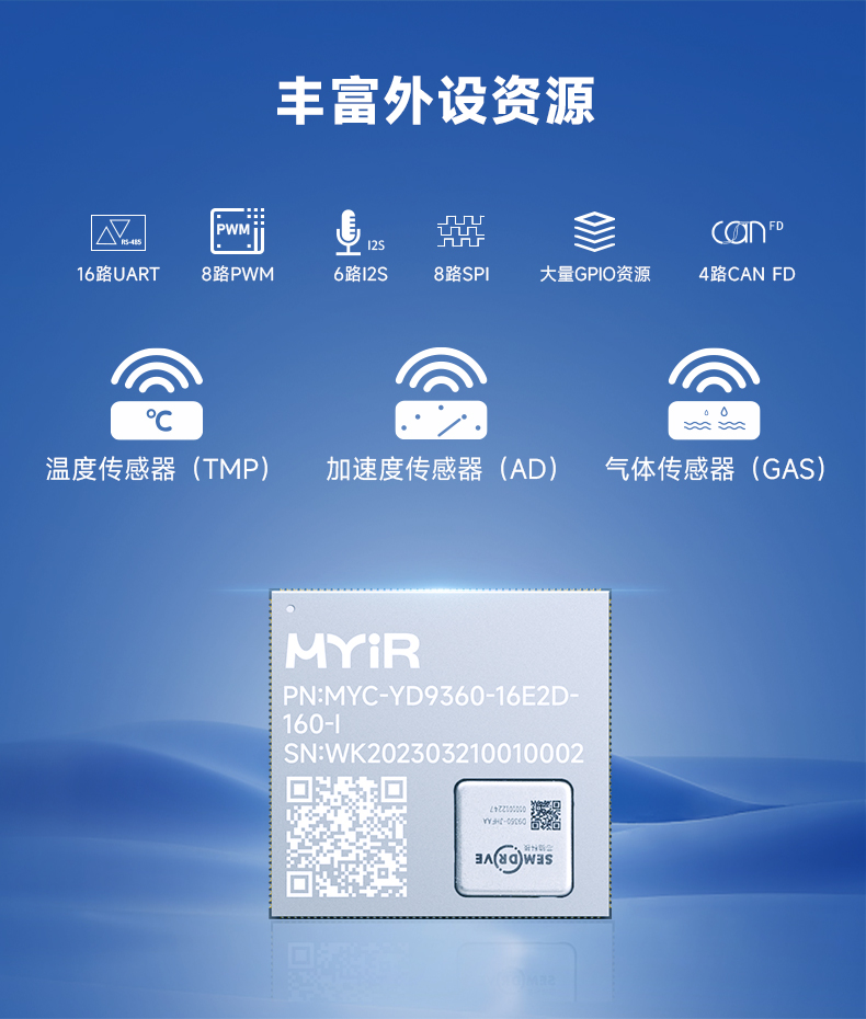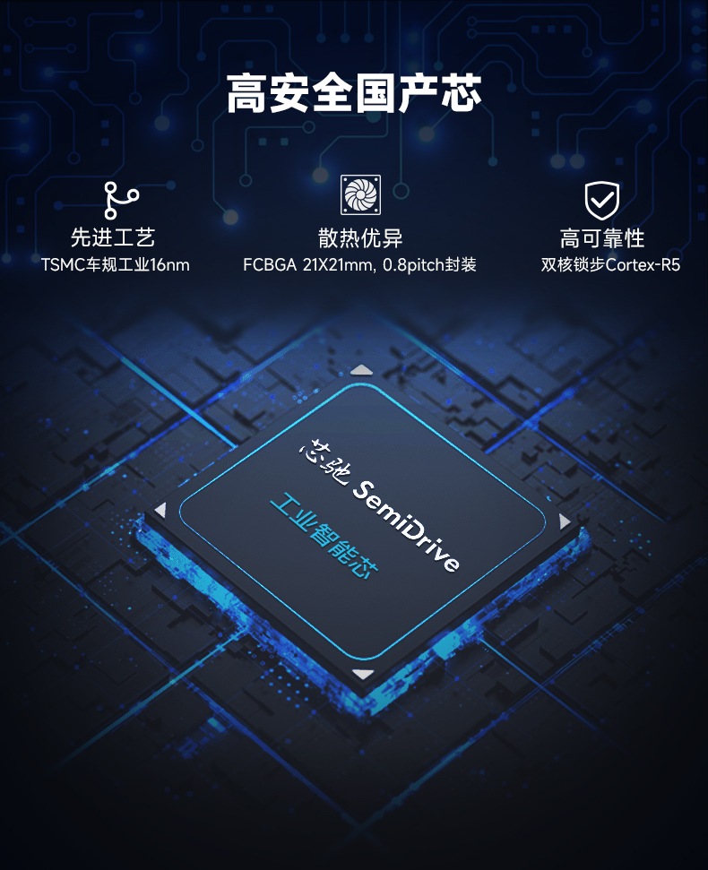 当今时代,以数字化、网络化、智能化为特征的第四次工业革命正在进行,伴随着国内汽车新能源的普及,加速了国产高安全芯片的快速发展,D9360是芯驰推出的一款六核CPU的高度集成、低功耗化、高安全性芯片,采用AEC-Q100车规级芯片工艺,并且通过ISO26262 ASIL_B功能安全认证,是国产高性能芯片的代表作。门徒娱乐电子与芯驰科技(SemiDrive)强强联合,基于芯驰D9-Pro高性能国产工业处理器共同推出门徒娱乐MYC-YD9360核心板及开发板,赋能新一代车载智能、电力智能、工业控制、新能源、机器智能等行业发展,满足多屏的显示需求。
