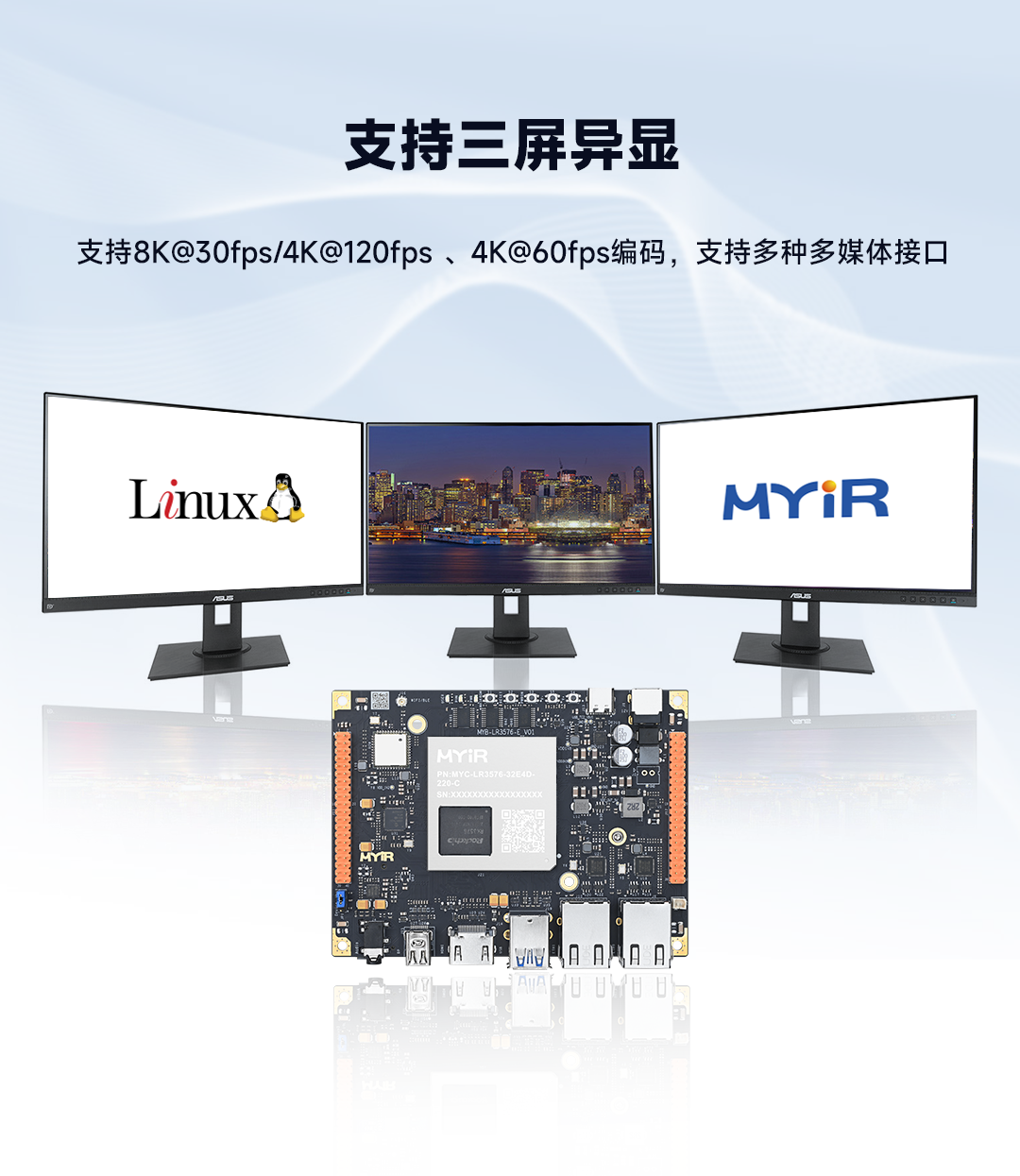 RK3576支持三屏异显,最高支持4K分辨率的视频显示,提供清晰的视觉体验。它还支持8K分辨率的硬解码,满足多场景多样化的显示需求。此外,RK3576的灵活VOP设计允许根据实际需求调整视频输出配置,提升系统的适用性和易用性?。
