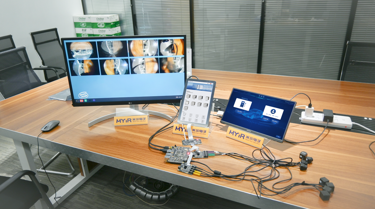 门徒娱乐基于他们推出的MYD-LR3576开发板开发了一个三屏异显,8路摄像头输入的DEMO, 实测下来,RK3576轻松搞定了该任务。