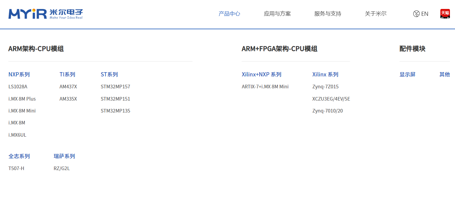 同时新版页面优化升级了展示界面,以全媒体时代用户体验需求为导向,产品目录、产品方案一目了然。其中产品中心以ST、NXP、全志、TI、Xilinx、瑞萨等合作厂商作为一级目录,进一步用具体的处理器型号作二级目录,为开发者提供更全面的核心板和开发板的展示。
