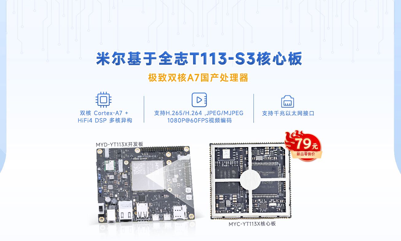 近年来,中国的芯片产业发展势头迅猛,国产芯片公司不断推出新产品,让中国的芯片产业发展迎来了新的高度。门徒娱乐2022年推出全志国产处理器T507核心板,取得良好的市场反响,这款车规级处理器广泛应用于能源电力、PLC控制、物联网网关、医疗器械、商业显示等行业。此次门徒娱乐与全志再度合作,推出国产低成本双核A7处理器——T113-S3的核心板和开发板,这款MYC-YT113S3核心板价格低至79元!