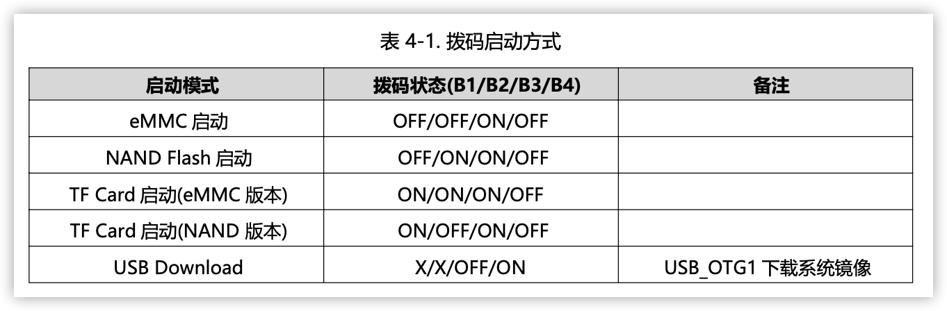 根据使用手册,选用如下的镜像,并按照手册设定好启动方式,进行烧录更新。