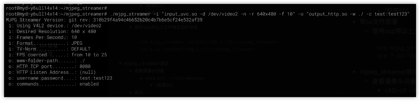 默认启动的mjpg_streamer是可以任意访问的,这很危险。但可以使用-c 用户名:密码来设置一个访问密码,可以参考下图中的指令: